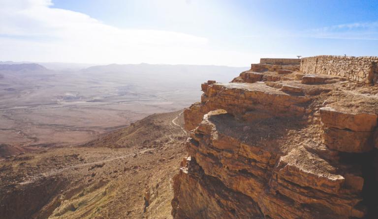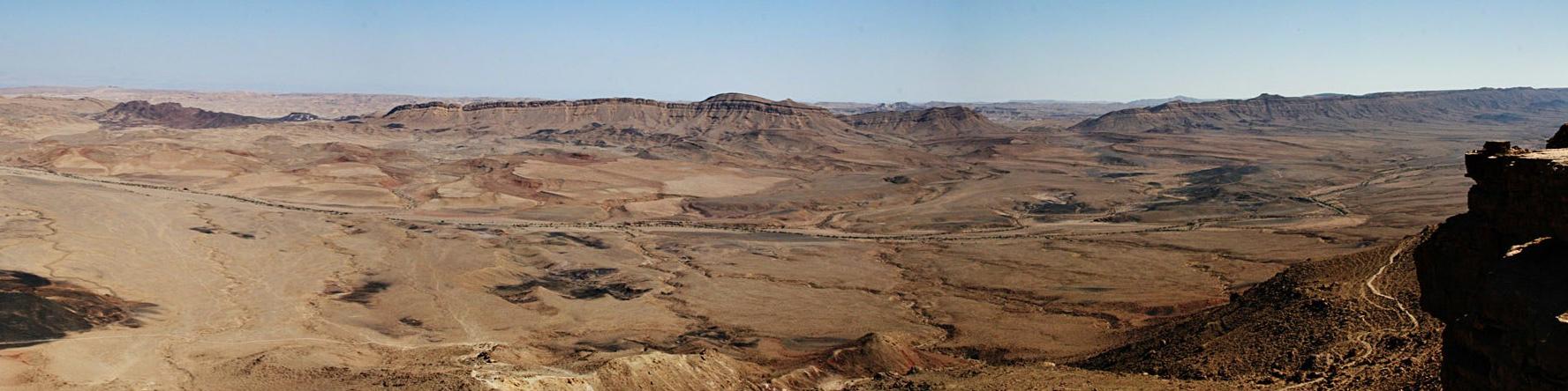 Die kleine Stadt erlaubt einen einmaligen Panoramablick über den Krater Ramon, mitten in der Wüste Negev. Ramon ist mit einer Länge von 40 km und einer Tiefe von 400 Metern, der grösste Krater der Welt. Er entstand, allerdings anders als die meisten Krater der Welt, nicht durch vulkanische Aktivitäten oder Meteorit-Einschläge, sondern durch Wind und Wasser. Erosionsprozesse haben die Landschaft geformt. Weit und breit nichts ausser karge Landschaft. Dennoch leben hier rund 40 verschiedenen Wüstentiere wie Schlangen, Nagetiere, Stachelschweine, Eidechsen, Skorpione und auch Schildkröten. Vor einem Kraterwände, welche senkrecht abfallen. Der Anblick lässt den Atem stocken, bringt einem zum Staunen. Diese Öde hat etwas Magisches. Man kann unmittelbar entlang des Kraterrandes spazieren gehen.