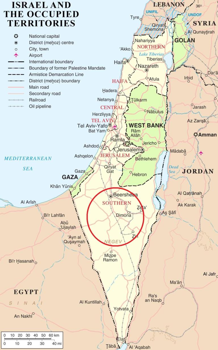 Mit dem Flugzeug und dem Auto lediglich ein paar Stunden entfernt von der Schweiz, aber eine ganz andere Welt. Der Kontrast könnte größer nicht sein. Die Gegend ist sehr karg und steinig. Alles erscheint in braun, grün ist Mangelware. Kaum Bäume, kaum Schatten, vor allem Sonne. Weit und breit kein Fluss, kein See, dann Steine und nochmals Steine, feinster Sand .... Die Temperaturen bleiben im Sommer locker über 40 Grad im Schatten. Dafür aber ist der Flughafen, jedes Geschäft und jedes Haus klimatisiert. Drinnen kühl und draussen heiss. Dem kargen Wüstenboden wird mittels Tröpfchenbewässerung Gemüse und Früchte und Trauben abgerungen. Nur wenige Tropfen Wasser und schon wird es grün. Die Region ist nur dünn besiedelt. Sie umfasst rund 60% des Staatsgebietes, jedoch wohnen hier nur rund 10% der Einwohner. 600'000 Juden die ihren Wohnort frei wählen dürfen und 200'000 Beduinen, die in 8 Townships wohnen sollen, 100'000 davon mit israelischer Staatbürgerschaft. Städte erkennt man bereits 1 Kilometer im Voraus am Abfall seitlich der Strassen. Müll türmt sich auch direkt vor den nicht genehmigten Slumsiedlungen der Beduinen ebenso wie vor prächtigen Villen. Hier geht es um Grundbesitz und damit verbunden, um die Existenz von 40 durch den Staat nicht anerkannte Ortschaften. Das Dorf Al-Araqub wurde von israelischen Behörden seit 2010 mit schwerem Gerät über 100-mal abgerissen. Die Beduinen verwenden in kleinen Siedlungen in erster Linie Bleche zum Bauen und auch als Sichtschutz. Ziegen stehen im Schatten vor den Hütten. Dann sieht man Esel und mitten in der Wüste tauchen freilaufende Kamele auf. Der Strasse entlang reiten Beduinen mit Turban wie stolze Krieger auf ihren schwarzen Pferden. Frisch aus dem Boden gestampfte offizielle jüdische Siedlungen sind eingezäunt und mit Kameras überwacht. Jeder baut wie es ihm gerade recht ist. Einige mit Lehm, andere mit Stroh, und wieder andere mit Holz oder Eisenkonstruktionen und Gips. Alles unmittelbar nebeneinander. Gegen Sonnenuntergang färben sich die Hügel ockerrot. Ein angenehm kühler Wind weht. Selbst im Hochsommer kann es nachts kühl werden. Hier leben Juden und Araber nebeneinander und gleichzeitig ineinander verwoben und dennoch nicht gleichberechtigt. Die Beduinen des Negevs identifizieren sich stärker mit Israel als andere arabische Israelis. Die drusischen Männer werden im Gegensatz zu den anderen arabischen Israelis zum Wehrdienst eingezogen, werden aber von den restlichen muslimischen/christlichen Palästinensern/Arabern in Israel oft als Verräter angesehen, wenn sie freiwillig zur Armee gehen. Die Beduinen in Israel haben eine der höchsten Geburtenraten der Welt. Familien mit über 10 Kindern werden als normal angesehen. Hebräisch ist die offizielle Amtssprache, aber im Negev sprechen die Beduinen arabisch. Weder die hebräischsprechende noch die arabischsprechende Bevölkerung haben meist Kenntnis von der Sprache des jeweils anderen, was Missverständnisse und Intoleranz verfestigt. Um den Kontrast zu vervollständigen, müssen die zahlreichen Neueinwanderer russischer Herkunft erwähnt werden. Ihnen wurde die Möglichkeit gegeben, Wohnungen zu günstigen Preisen in kleinen Satellitenstädten im Negev zu erwerben. Russisch ist mit rund 1,3 Millionen Sprechern zurzeit die drittgrösste Sprache Israels.