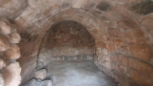 Faszinierend sind die freigelegten unterirdischen Kavernen, in denen damals gelebt wurde, zusammen mit Tieren und die auch für bäuerliche Tätigkeiten genutzt wurden. Am Eingang platzierten die Erbauer rechteckige, beschlagene Steine, um das Eindringen von Regenwasser in den Wohnbereich zu verhindern. Im Innern wurden Gewölbedecken mit Feldsteinen gebaut. Im Boden findet man eingelassene Feuerstellen und Fragmente von Mühlsteinen. Gefunden hat man eine Presse aus dem 8 Jh. n.Chr. aus der frühen Islam Periode, welche zur Herstellung von Olivenöl verwendet wurde.