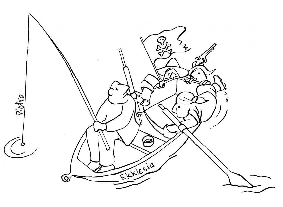 «Ein Schiff, das sich Gemeinde nennt» .... Ekklesia ist das griechische Wort für die christliche Gemeinde. Die Gemeinde ist ein Schiff, das uns durch den Strom der Zeit sicher in den Hafen bringt. Gemeinde ist ein Geschenk. Es ist ein Projekt Gottes, an dem wir teilhaben dürfen. Fantastisch. Piraten entern das Boot - eine etwas kurlige Vorstellung, die einen zum Schmunzeln anregt. Aber Achtung: Gemeinde ist gefährdet, immer - an jedem Ort und zu jeder Zeit. Da dürfen wir uns keinen Illusionen hingeben. Lauheit, Gesetzlichkeit, Lieblosigkeit, irrige Lehren, Egoismus, Schwärmerei, Bitterkeit, Neid, Machtgehabe, schlechte Prioritäten, mangelnde Hingabe, Besserwisserei, Unversöhnlichkeit. All das gefährdet geistliches Leben und die Liste kann noch lange fortgesetzt werden. Wir sind miteinander dafür verantwortlich, dass unsere Gemeinde auf Kurs bleibt. Dabei geht es nicht darum, dem Anderen vorzuhalten, wo er falsch liegt. Die Gefährdungen gelten uns allen und zwar in unserem persönlichen Leben. Darum haben wir alle für unseren Glauben Sorge zu tragen.