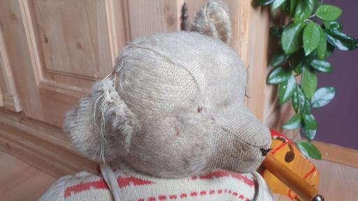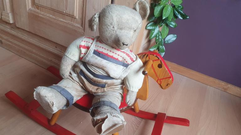 Meine Mutter musste ihren Estrich leeren und hat meinen Teddybär gefunden. Als kleine Erinnerung an meine Kindheit hat sie ihn mir mit breitem Schmunzeln überreicht.