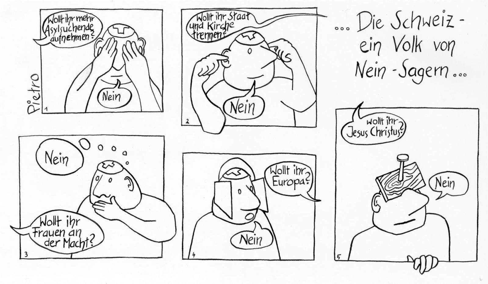 Um frei leben zu können, muss man widerstehen lernen. Nein sagen können ist etwas ganz Elementares. Im allgemeinen jedoch rutscht das Nein leichter von den Lippen als das Ja. Man kann dies schon bei Kleinkindern beobachten. Zuerst lernt das Kind den Kopf schütteln und Nein sagen. Erst einiges später kommt das Ja und das Nicken. Meine Kinder haben glücklicherweise diese Phase überwunden. Bei allem und jedem hiess es damals: «Nein». Und wenn sie etwas noch so gerne gehabt hätten was man ihnen anzubieten hatte: «Nein». Trotzphase nennt man diesen Lebensabschnitt. Und ein bisschen von diesem Trotz bleibt einem ein Leben lang. Auch der Glaube ist hier tangiert. Gott macht uns Menschen in Jesus Christus ein Angebot. Er will uns begegnen und uns helfen unser Leben zu gestalten. Doch die Antwort vieler Menschen ist verneinend. Nein sagen ist eben leichter als Ja sagen. Mit einem Nein ist man niemandem verpflichtet. Man muss sich auf nichts einlassen, und kann weiter wursteln wie bisher. Mit einem Nein kann ich mich zufrieden geben mit dem was ich bin und muss mich nicht verändern. Aber Achtung, man sollte nicht vergessen, dass wer sich abschottet, früher oder später auch von den Realitäten eingeholt wird. Das trifft ohne Zweifel auch auf Jesus Christus zu. Die Bibel macht deutlich, dass Jesus eines Tages in Macht und Herrlichkeit wiederkommen wird. Und ausserdem gilt, dass wer Nein sagt, auch viel verpassen kann. Wer zu Jesus Nein sagt, verpasst Halt, Sinn und zudem das ewige Leben. |