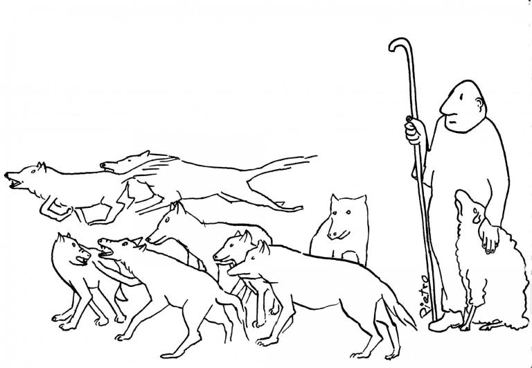 Diese verdrehte Sichtweise stammt aus der Bibel. Jesus meinte: "Ich sende euch wie Schafe unter Wölfe". Schafe unter Wölfen? Das entspricht nicht unseren Vorstellungen. Es ist irgendwie alles verkehrt. Das uns geläufige Bild, ist dasjenige vom Hirten, der für seine Schafe schaut und sich kümmert. Viele Christen meinen, es genüge sich lieben zu lassen und viel Wolle zu produzieren. Falsch. Jesus sendet. Er hat einen Auftrag. Wie kann man Schafe senden? Einen Hund kann man dressieren und ihn soweit bringen, dass er einen Auftrag vollbringt, aber nicht Schafe. Alles ist verdreht - wie im richtigen Leben. Jesus reizt das Bild vom Schaf und dem Hirten aus. Der Hirte beschützt nicht nur, sondern gefährdet auch. In seiner Sendung sind gar Verluste einkalkuliert.
